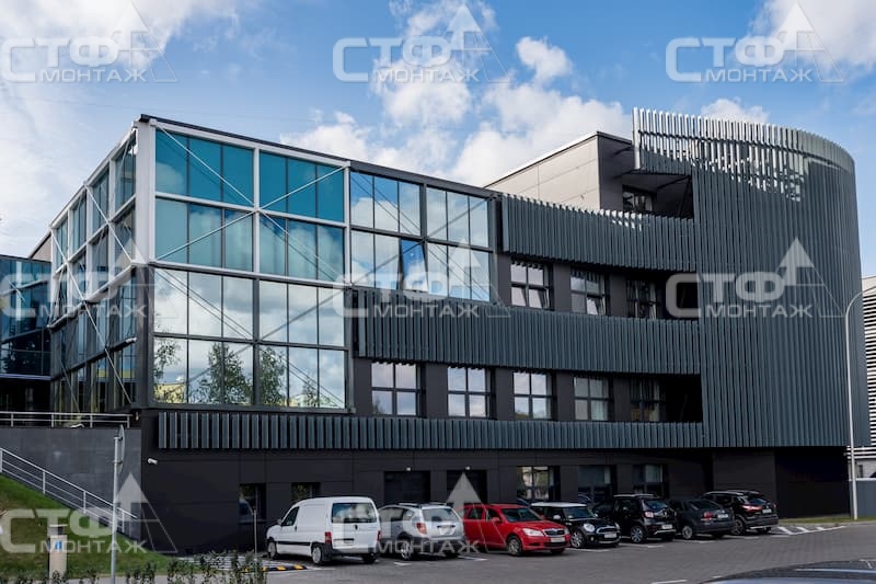 Компания ООО «СТФ-монтаж» в августе 2019г. закончила модернизацию здания ОАО «Белгазпромбанк» по ул. Притыцкого в г. Минске в качестве генерального генподрядчика. Для реализации архитектурной концепции применены нестандартные технические решения, которые команда ООО «СТФ-монтаж» совместно с инженерной компанией «Энека», успешно воплотили в жизнь.