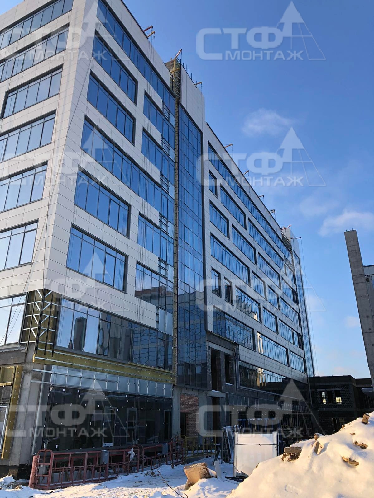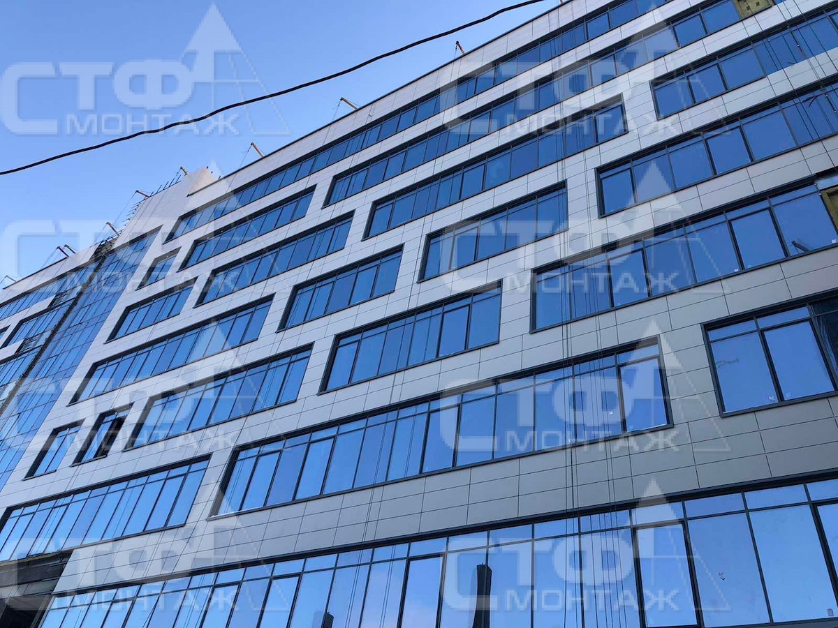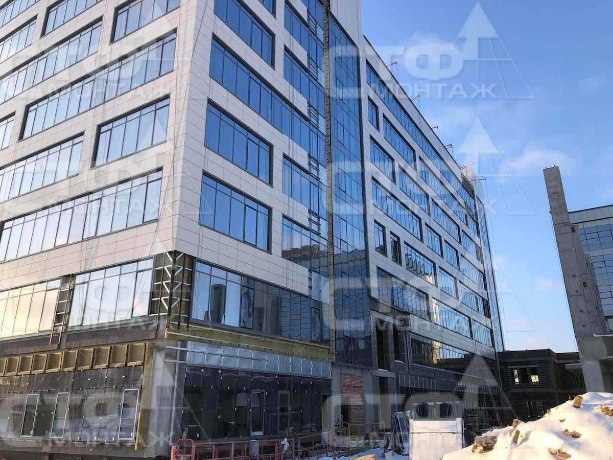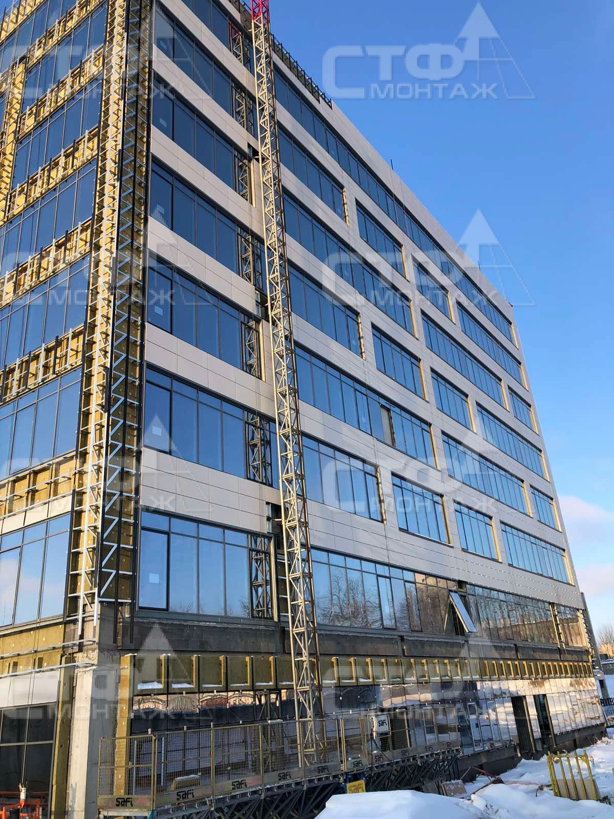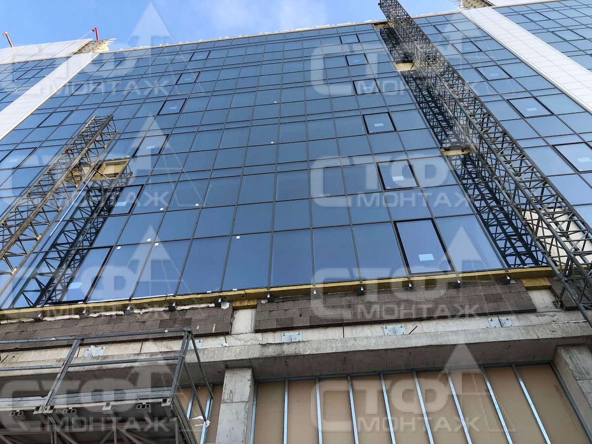 Компания СТФ продолжает производство работ по выполнению монтажа витражных систем остекления, устройство вентилируемых фасадов для объекта: МФК G-S PLAZA "Жемчужина" по ул. С. Ковалевской в г. Минске.