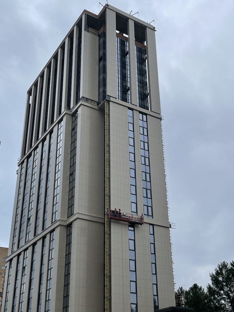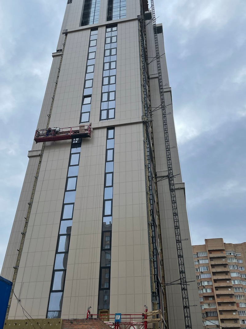 Монтаж вентилируемых фасадов и витражей на объекте: «Жилой комплекс Посольства Республики Беларусь в Российской Федерации г Москве по Погонному проезду». Выполнен комплекс работ по устройству витражных систем остекления, монтаж вентилируемых фасадов. Завершающий этап: установка примыканий!