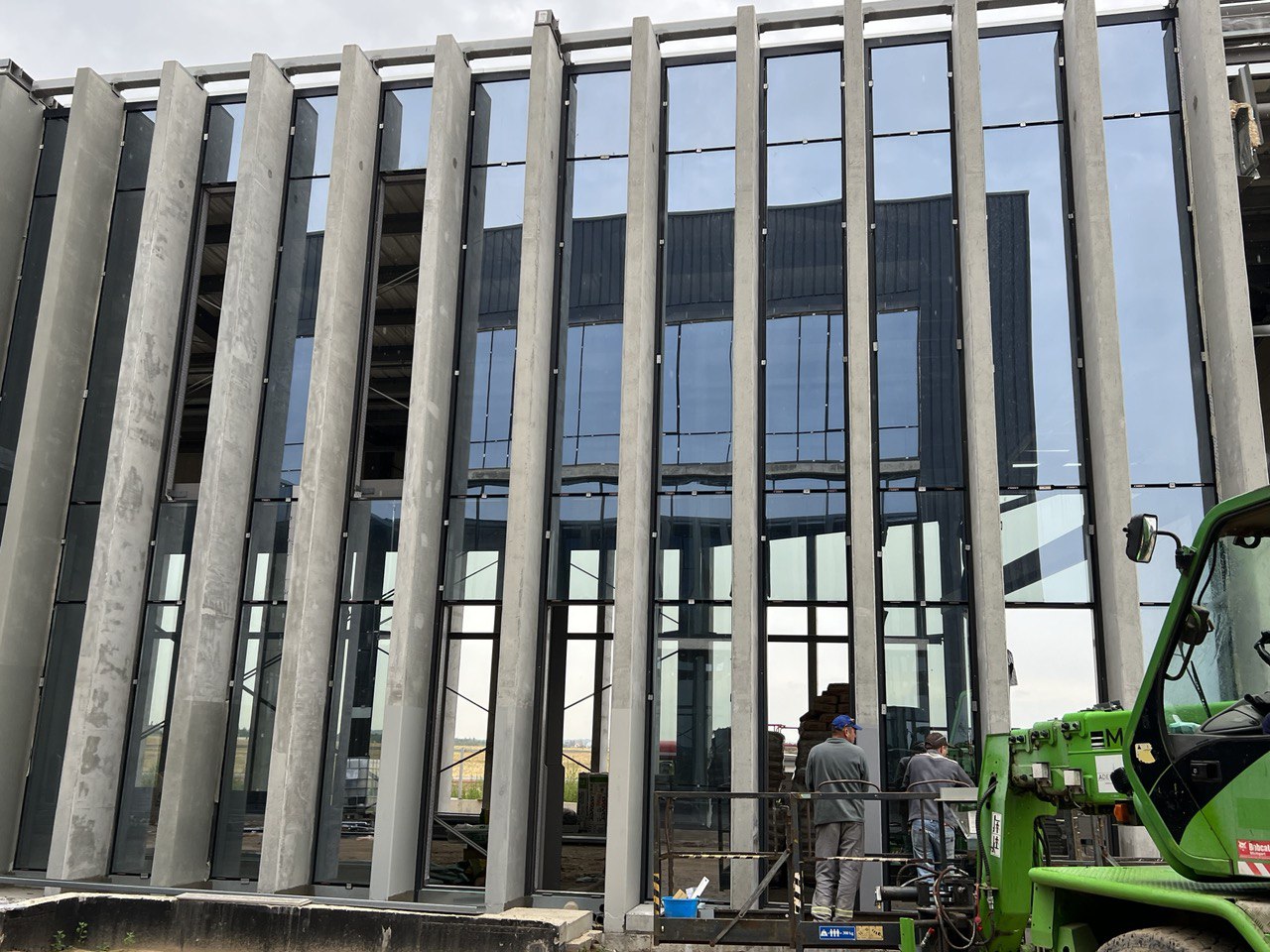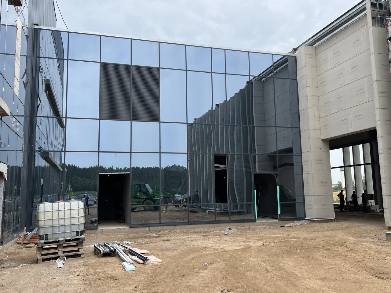 Продолжаются работы по монтажу витражей для Многофункционального комплекса по переработке алюминиевого сырья в Минском районе.